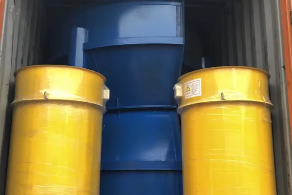3. The cement silo is generally of cylindrical structure. There is dust removal equipment on the silo to prevent the dust from leaking out, and there is a brake device under the silo to prevent the dust from clumping, so that the powder can be discharged smoothly.