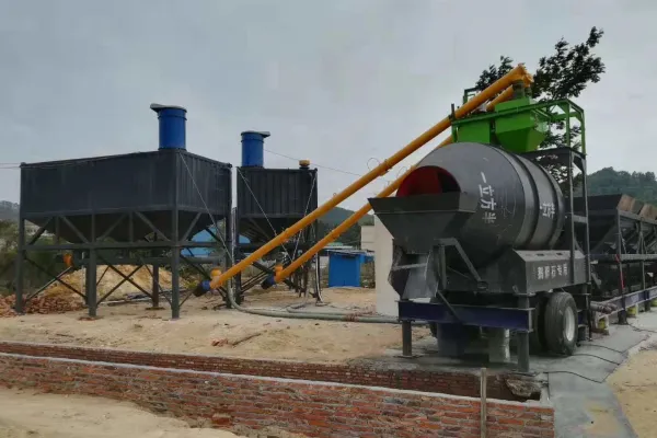 The drum mobile concrete batching plant is a concrete production equipment which integrates the material storage, weighing, conveying, mixing, discharging and fully automatic control system of concrete batching plant with one trailer unit, which can mix plastic and semi-dry hard concrete, with the mixing cylinder in forward rotation and reverse rotation discharge. The screw conveyor is integrated in the truck-mounted platform. It is identical to the fixed automatic mixing plant in terms of operation, operation and maintenance, and has unique features such as flexible movement, quick and easy disassembly, and simple storage and management. It is the best model for mobile construction in public railroad, bridge, port, hydropower and other projects.