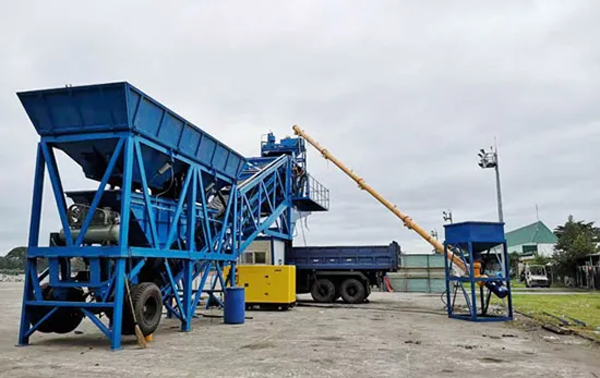 YHZS60 mobile concrete mixing station is mainly used for mixing and building high-grade highways, urban roads, airport runways and other paving concrete, roadbed concrete, roller compacted concrete, precast concrete, and commercial concrete for mixing construction. The whole set of equipment is compact, and the process of feeding, weighing, stirring and other processes of concrete production is centralized on a trailer unit; the man-machine interface is simple and clear, the work is stable and reliable, and it is applicable to various harsh environments; the whole machine design meets the environmental protection requirements , excellent mobile performance; the use of double-shaft forced mixer, continuous work ability, stirring evenly and quickly, suitable for multi-line long-term concrete construction requirements.